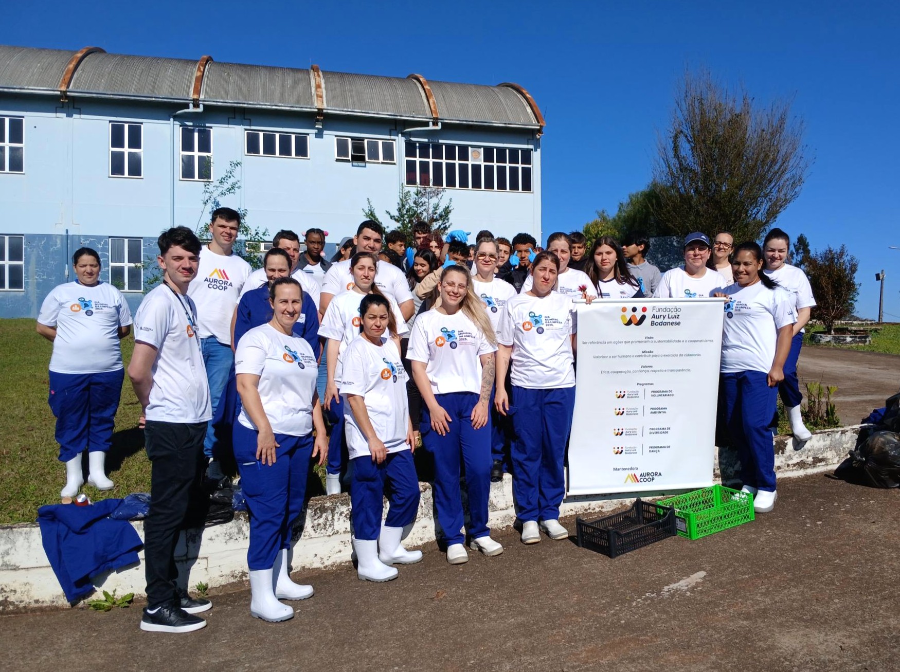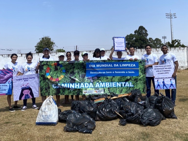 Comprometimento com o meio ambiente e com a comunidade. A Fundação Aury Luiz Bodanese (ALB), entidade mantida pela Aurora Coop, reafirmou seu protagonismo em ações de responsabilidade socioambiental ao promover a 2ª Caminhada Ambiental, em alusão ao Dia Mundial da Limpeza (20/09). A iniciativa aconteceu ao longo do mês de setembro e mobilizou cerca de 460 voluntários de 34 unidades da Aurora Coop, que se organizaram em mutirões de limpeza e plantio de árvores em 21 municípios de seis estados brasileiros.